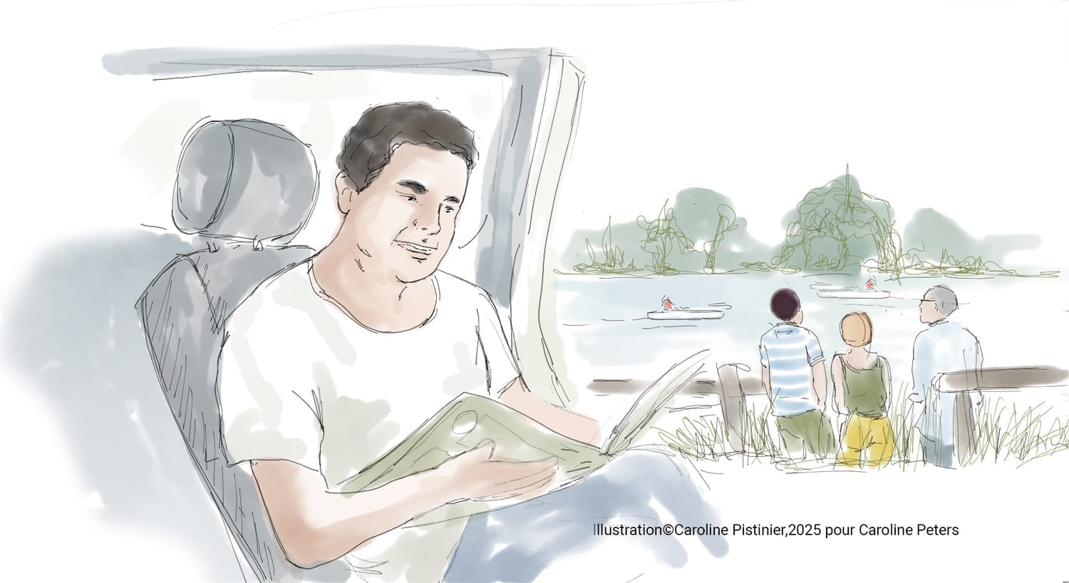 Je l'y ai laissé 30 minutes, avec un magazine dans lequel il aime souffler. J'ai expliqué que Maxime en avait besoin et son frère, moi et mon amie sommes restés sur le bord du parking à discuter, en attendant qu'il recharge ses batteries.